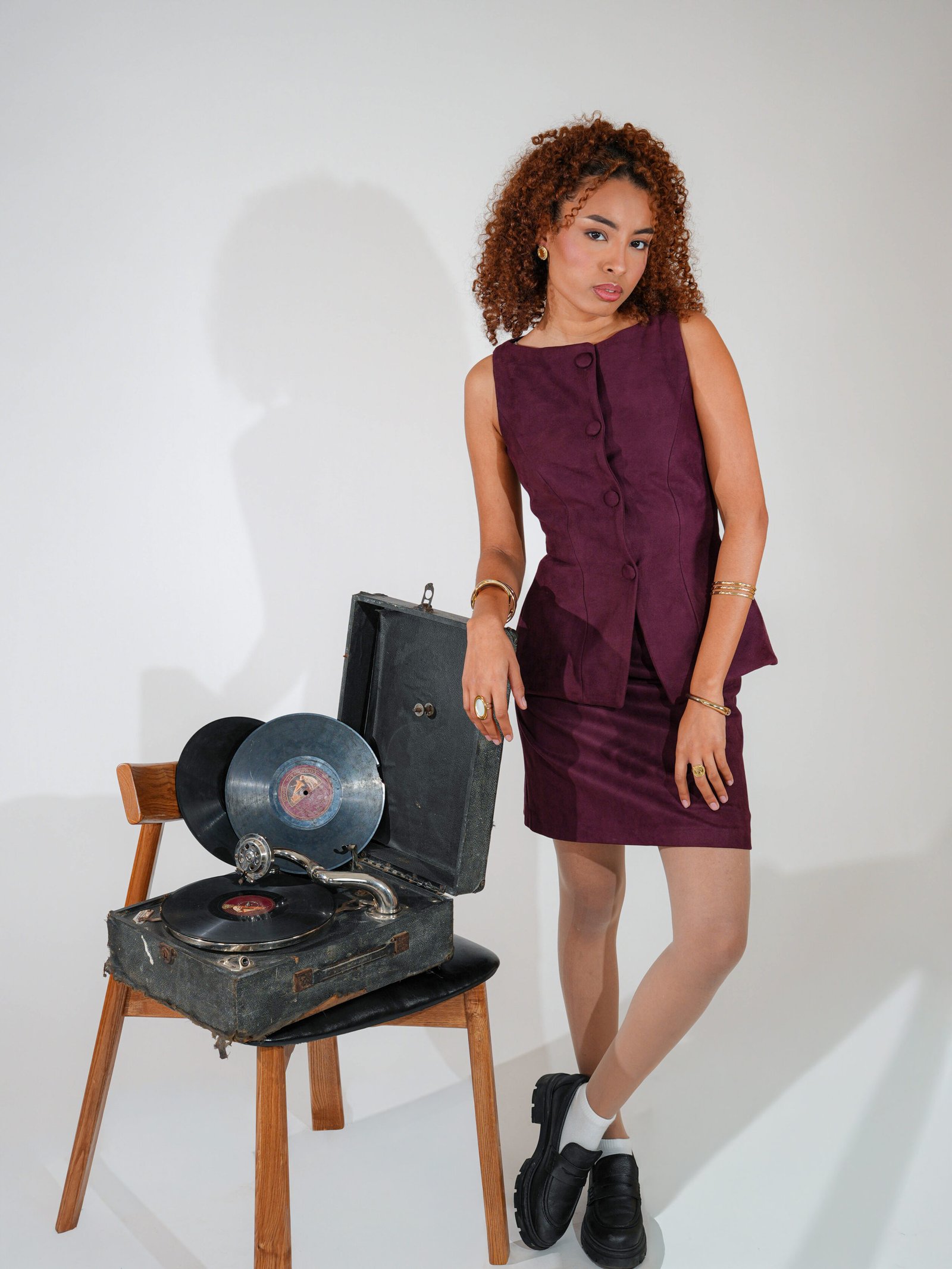 Esprit libre, allure effortless. Cet ensemble en daim mêle chaleur et confiance, à l’image de Rachel ; audacieuse, spontanée, résolument moderne. Sous sa douceur terreuse, une énergie vive celle d’une femme qui sait se réinventer sans jamais se